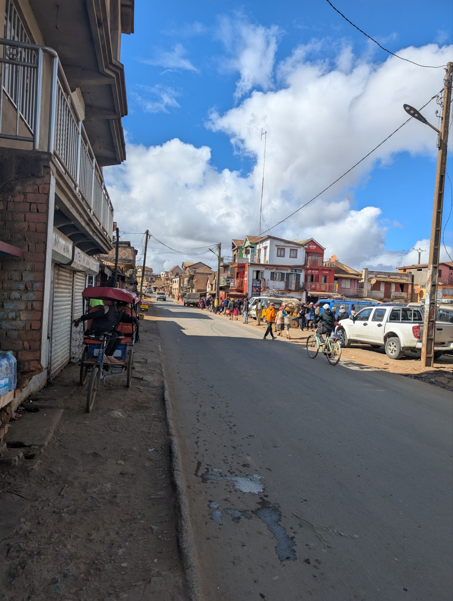 We started in middle of Antsirabe and even in the morning was a moderate amount of traffic. Sometimes on the rough unpaved sections I am just as fast as a large truck, though mini-buses and motorcycles are faster. By end of the day the local cyclists were also faster.