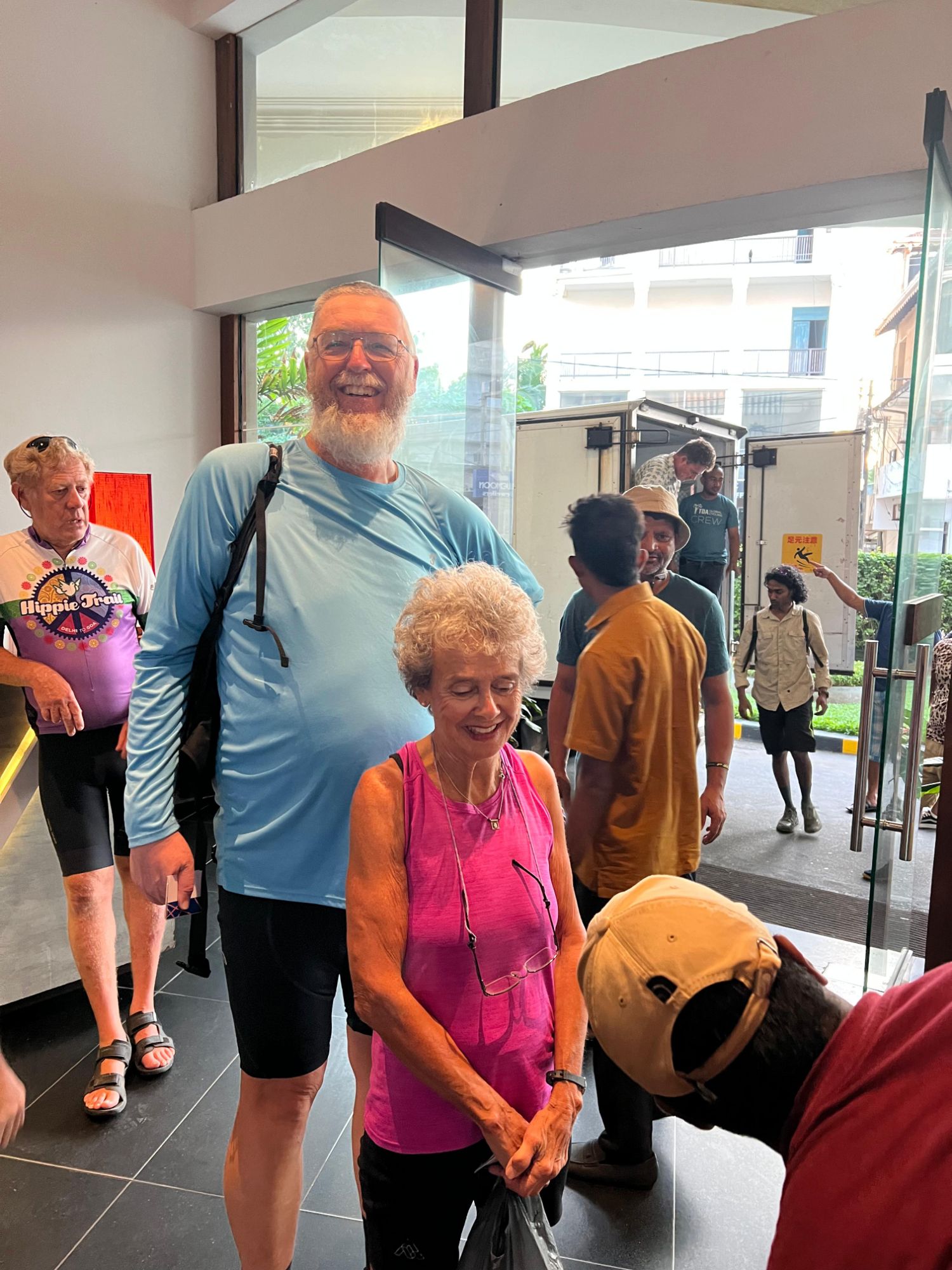 Apparently, I am the tallest rider. Someone decided it would be fun to also get a photo with the shortest ride. Jackie is 75 and still cycling strong.