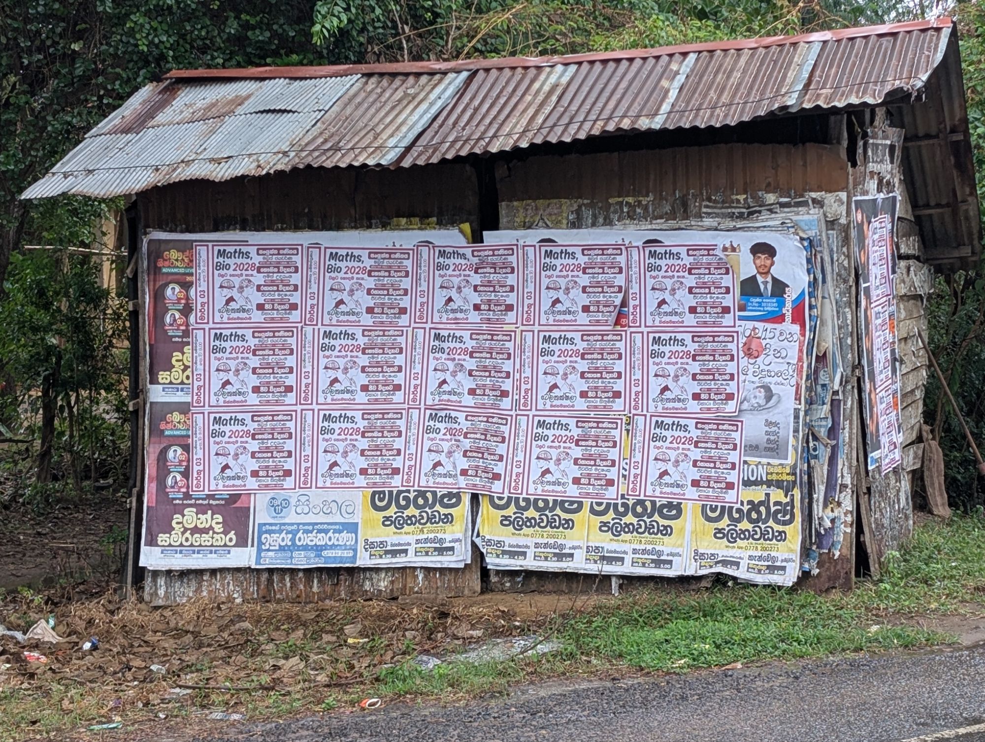 We see these posters advertising classes. Often the subject (Business, Accounting, Chemistry, …) is in English and surrounding text in local language.