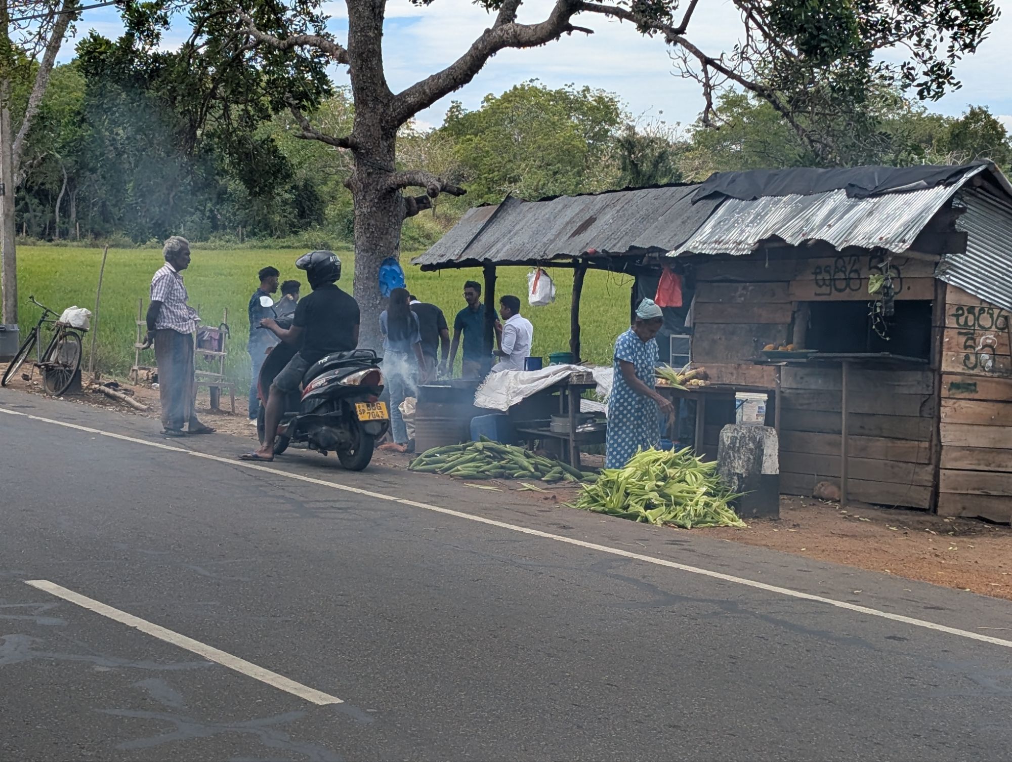 Roadside stand including corn.