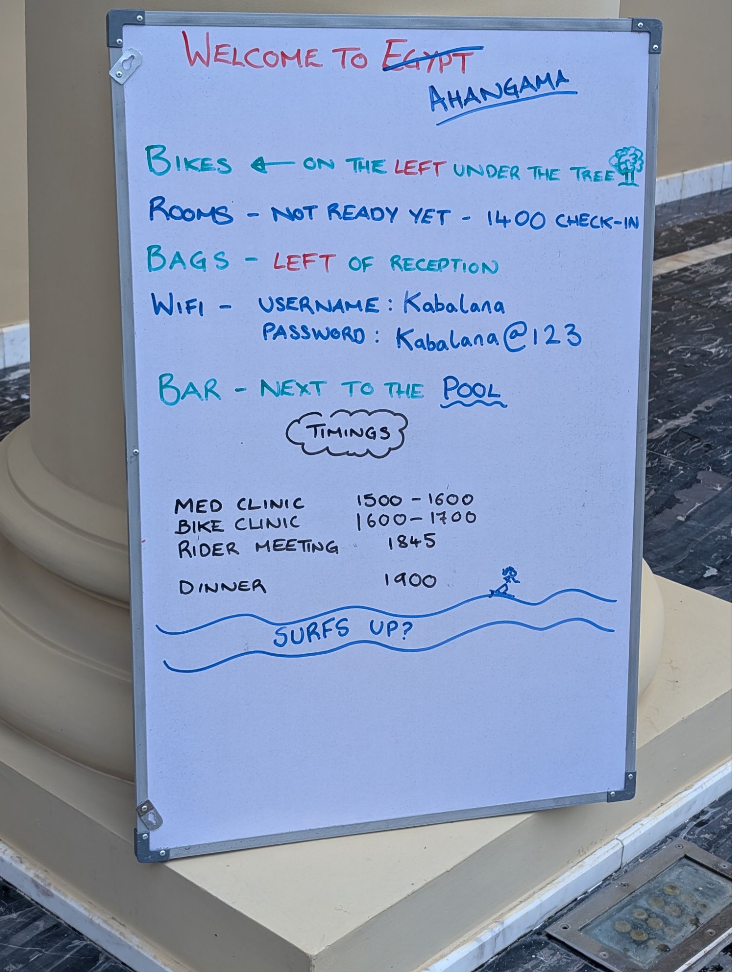 There is a standard rhythm and organization to things: park your bike, find your luggage, get your room, rider meeting to discuss the next day, dinner and then early to bed.