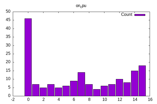 The distribution of worklods shows a small number of single-threaded workloads, a cluster around the number of cores w/o hyperthreading and then some that use as many cores as possible.