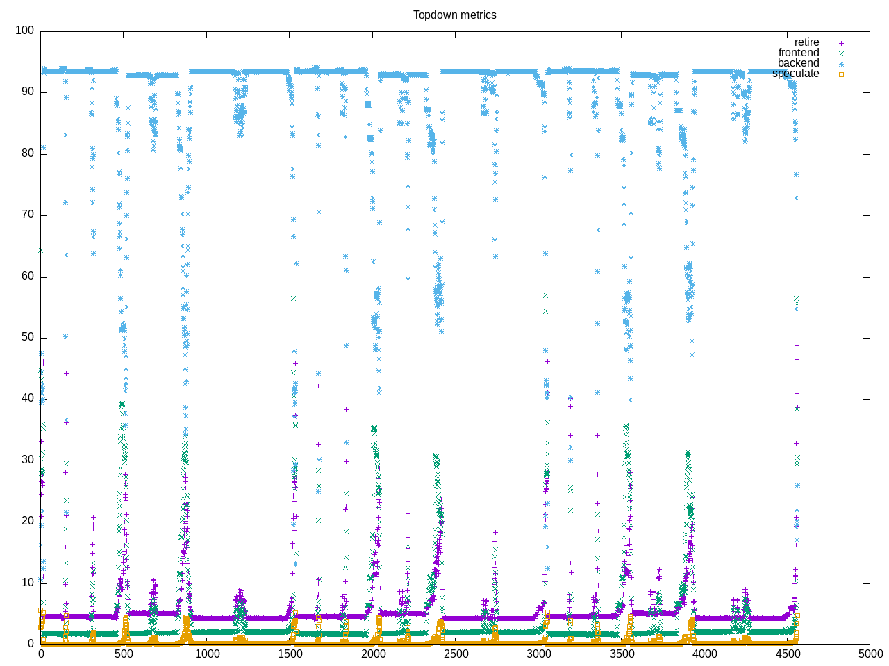 AMD metrics for 7840 processor confirm topdown memory bound workload. Approximately 100 L2 accesses but a 35% L2 miss rate.