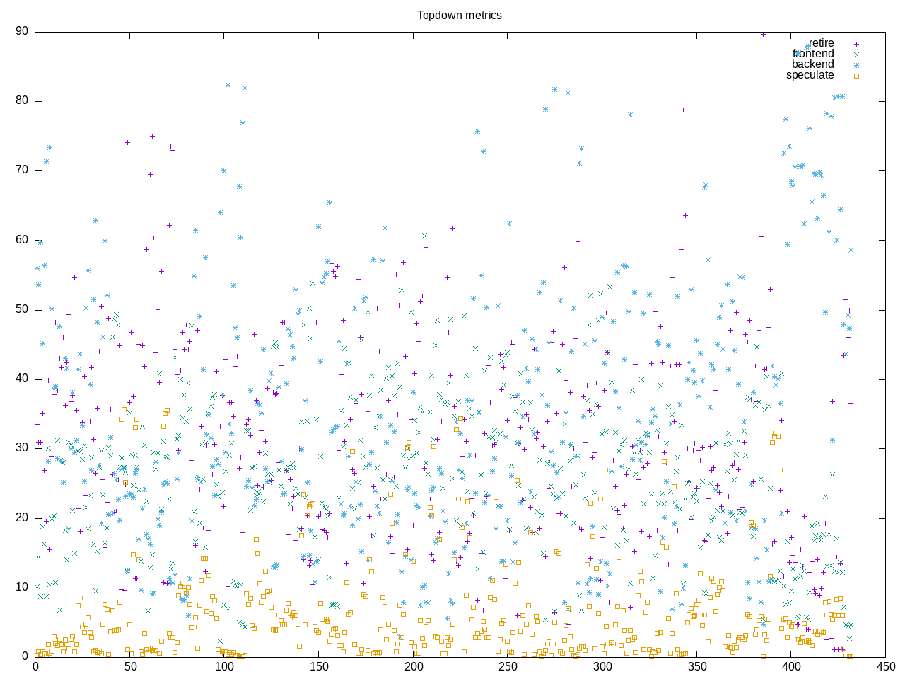 The topdown profile of the benchmarks is somewhat blurred and benchmark dependent.