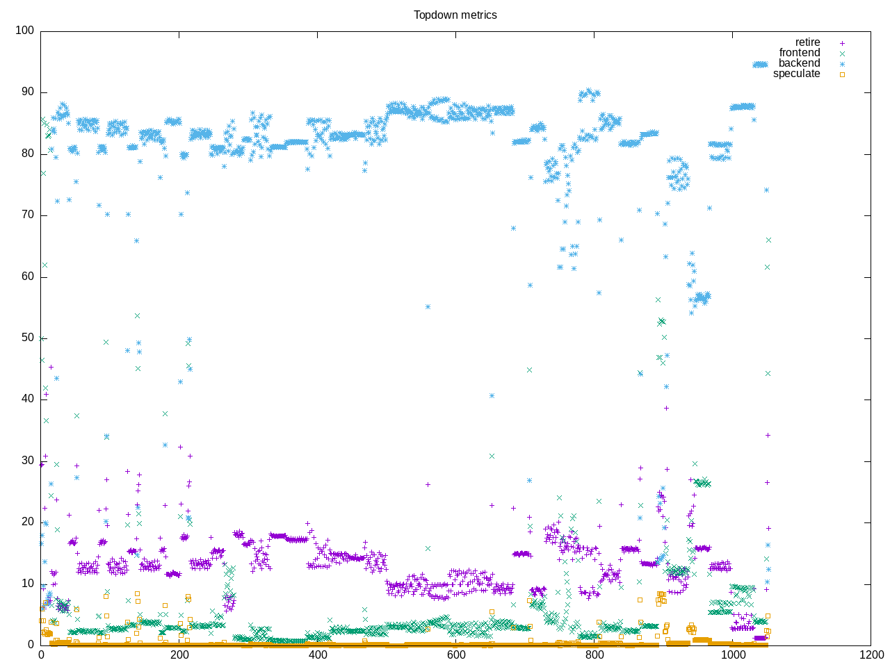 Topdown metrics are similar to the “tensorflow” test in being heavily backend bound. That test has more regular patterns while this one goes to different sub tests.