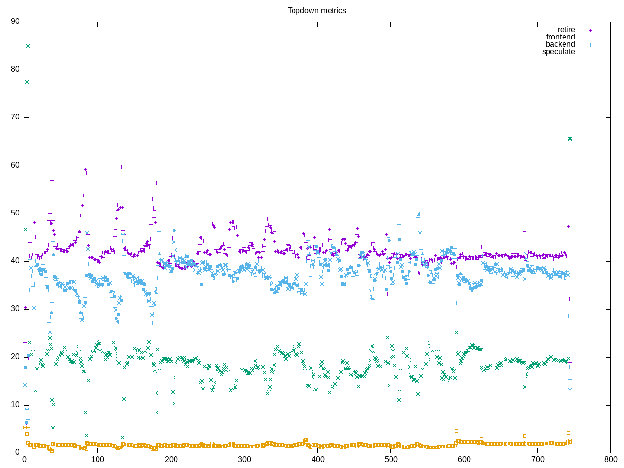Topdown profile shows a moderate retirement rate with backend stalls around 35% and frontend stalls a bit lower.