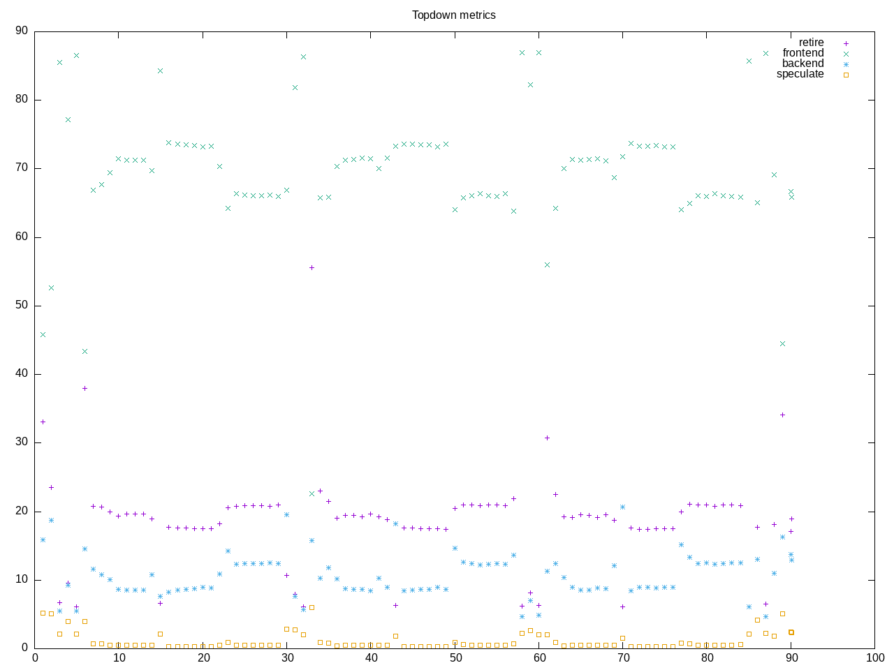 Topdown profile shows frontend stalls as highest with relatively low backend stalls.