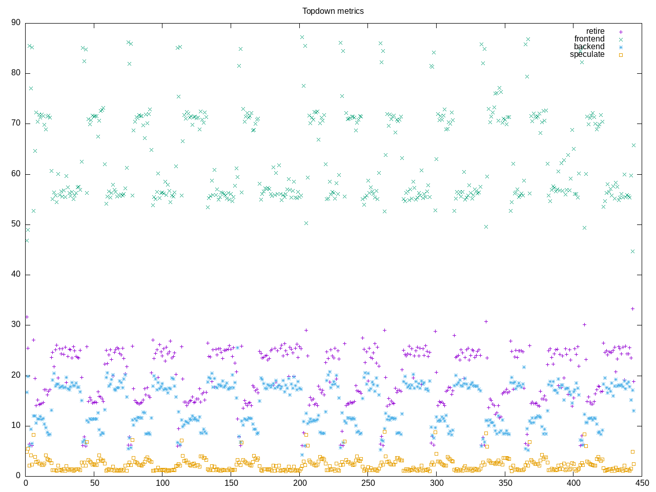 Intel metrics including a blend of memory latency and interestingly not as many frontend stalls.