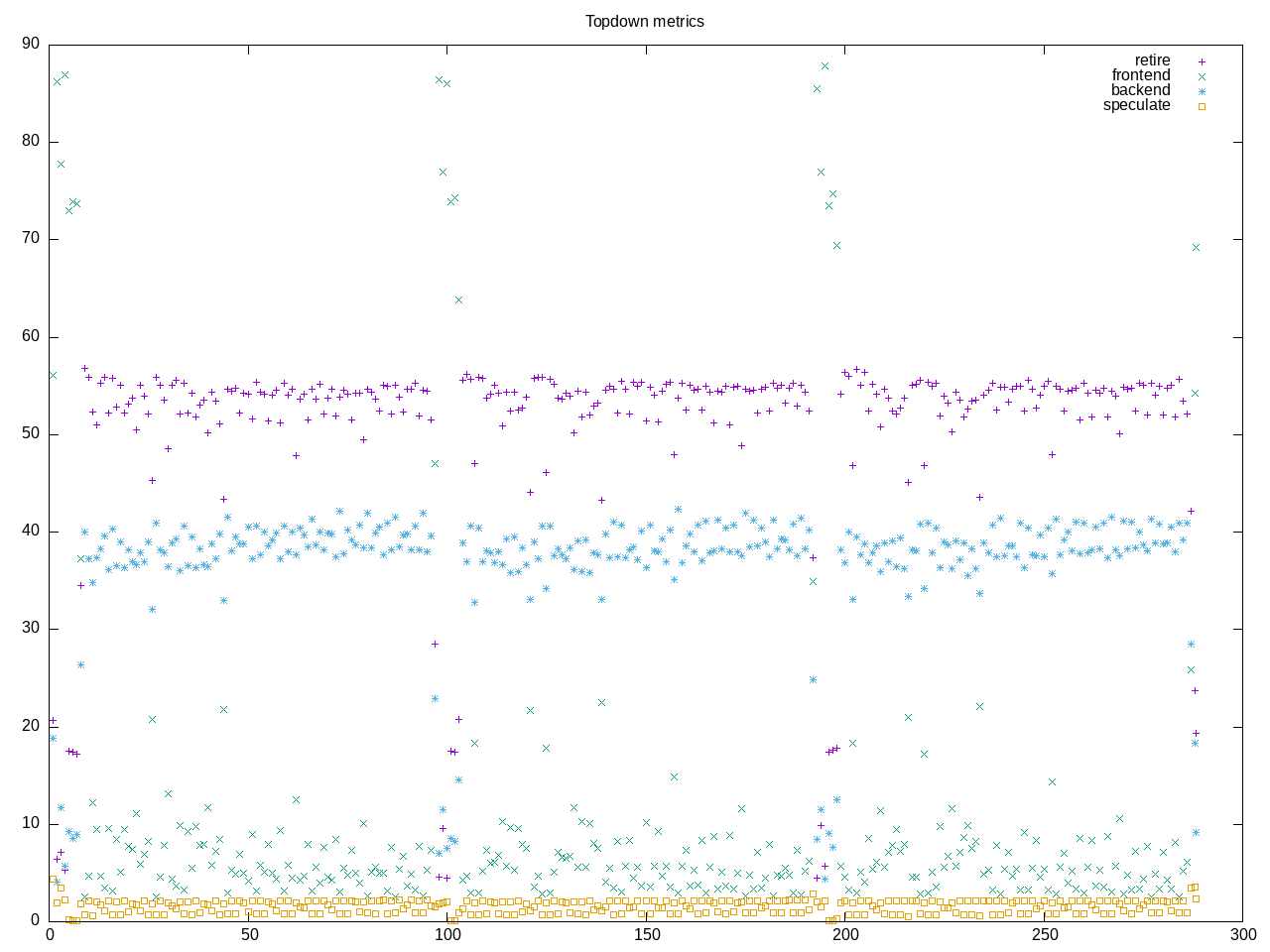 Benchmark workload of molecular dynamics shows approximately 50% of the slots are retiring.