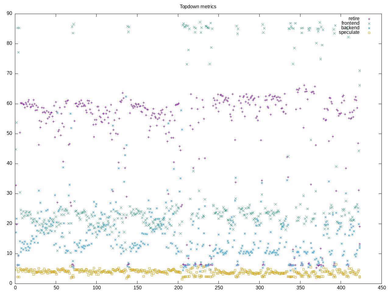 Topdown profile shows a high retirement rate and mix of backend and frontend stalls.