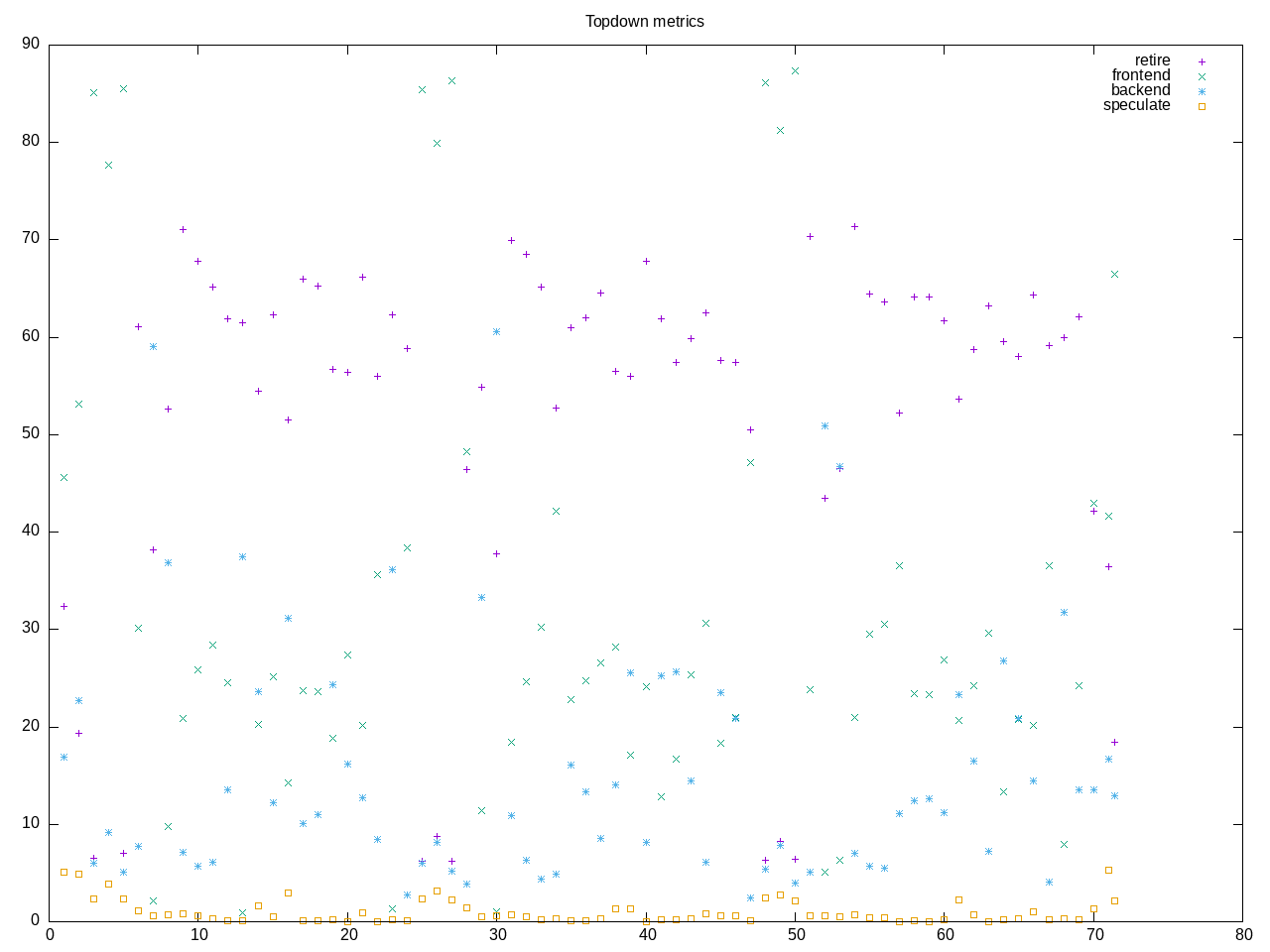 AMD metrics pull the composite together. The backend stalls are low and retirement rate is high. There is little floating point and very little L2 activity.