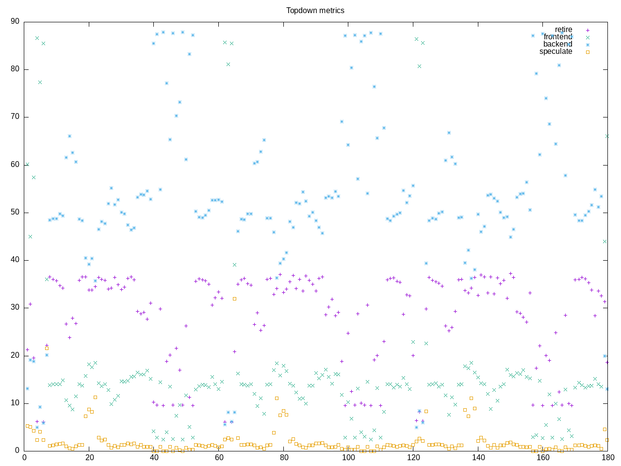 Topdown profile has metrics somewhat scattered throughout the execution.