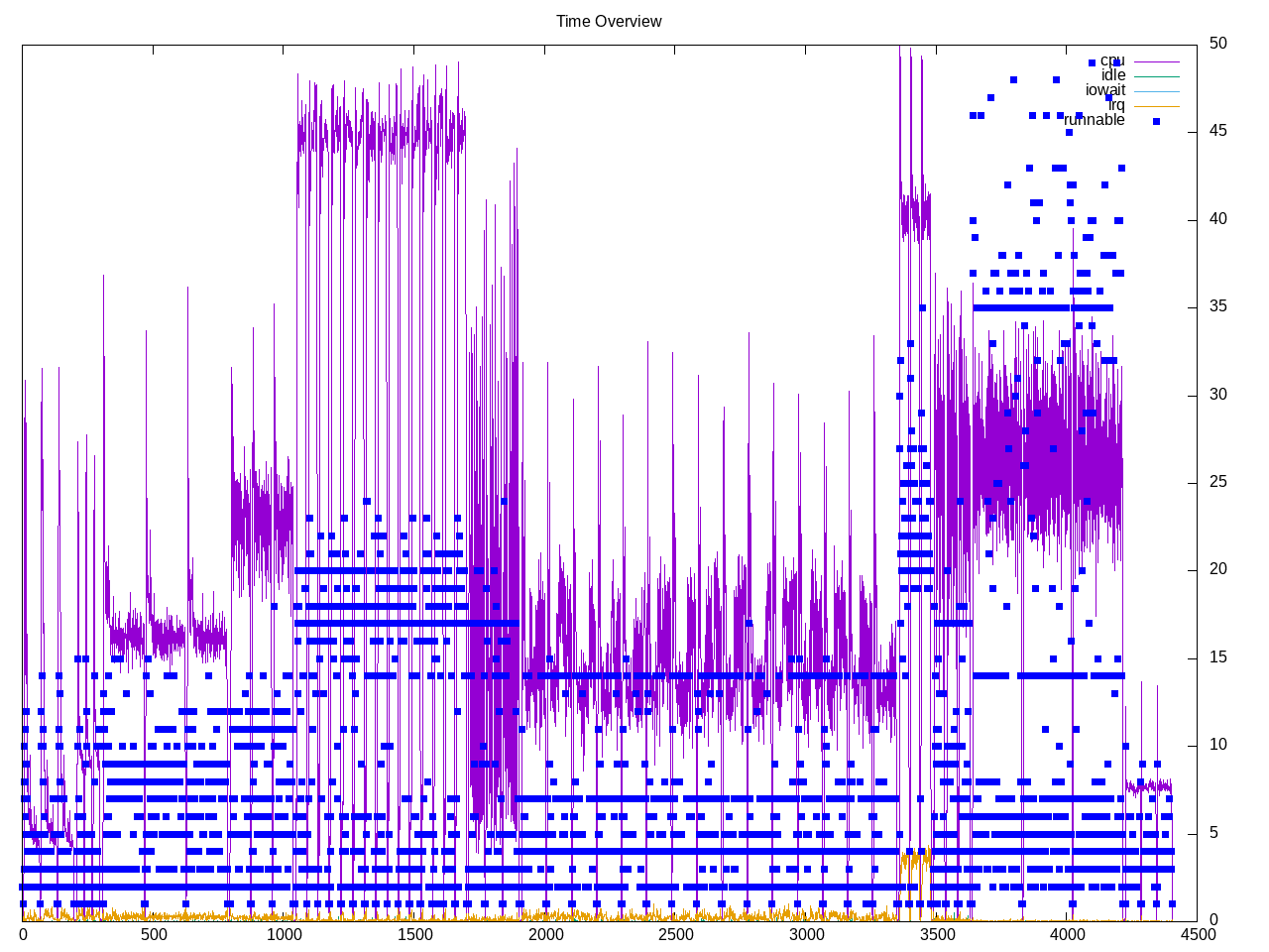 A suite of benchmarks testing the Java JVM from Apache Spark. There are 11 subtests. Looks like varying amounts of processes started and able to run – at times exceeding the available cores.