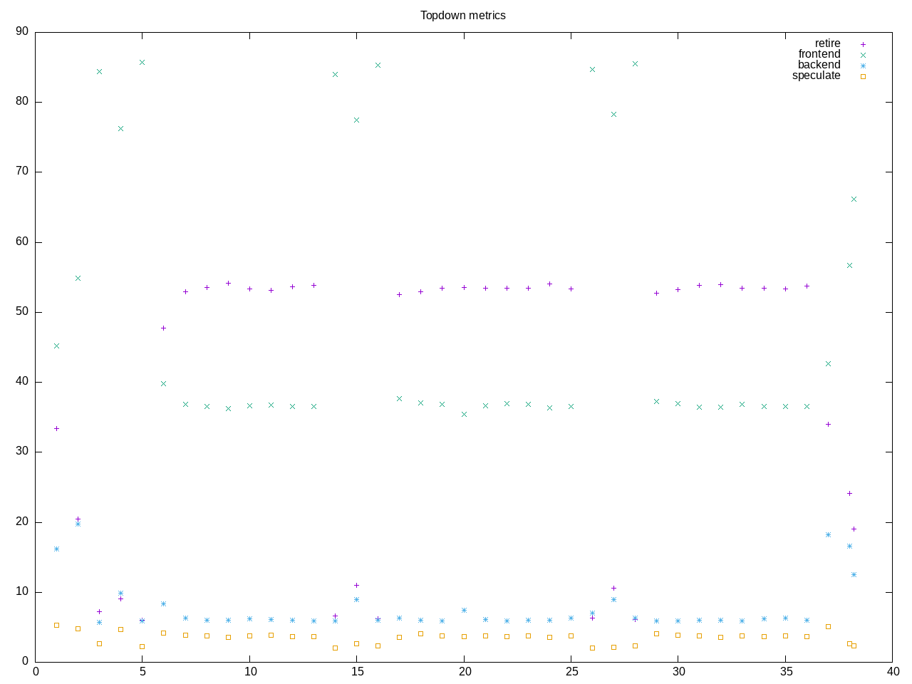 Topdown profile has few data popints but overall a high retirement rate with some frontend stalls.